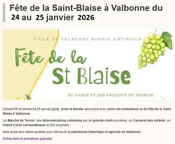 Du 24 au 25 janvier, venez nous retrouver sur le marché de Valbonne(06) pour la fête de la Saint Blaise